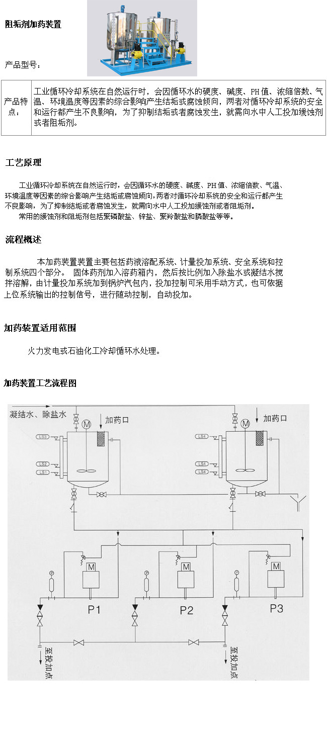 循環(huán)水加藥裝置技術(shù)特點(diǎn):